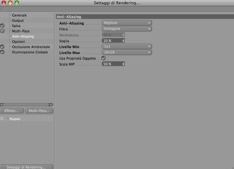 i puntini possono essere o la suddivisione delle ombre o quella della dispersione...(campioni min e max) aumentandoli avrai un immagine nitida....