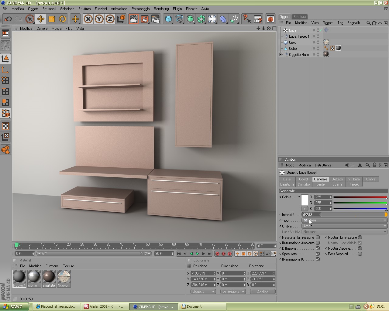 intendo, per ogni finestra ci và una luce area giusto?ma se io ho solo il mobile da illuminare senza pareti va bene crearmi il cubo?