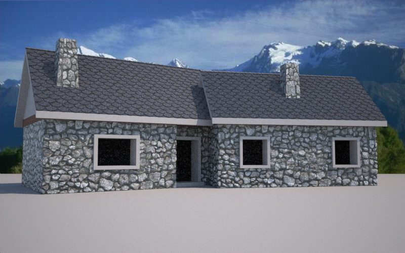 Potresti curare anche un po' più dettagliatamente la texture delle lastre di ardesia, in corrispondenza delle giunture...praticamente li dove si innestano i camini, magari facendo un piccolo innesto per l'inserimento delle lastre, nella pietra delle canne e anche nei punti esterni dove terminano le coperture.