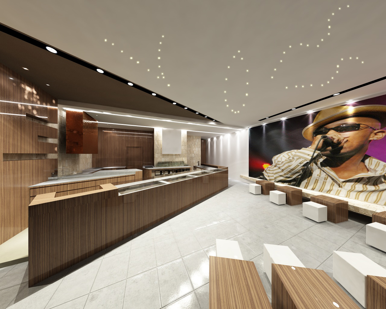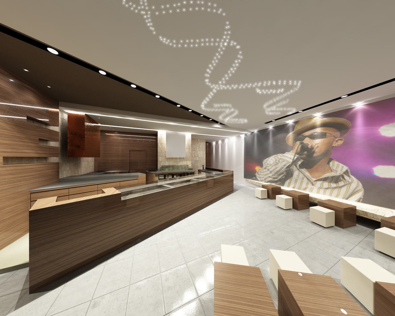 Per il bancone hai ragione ma ai clienti piace quel tipo di materiale e per il reesto ciò che a loro deve andar bene sono le luci( faretti, led e le fibre ottiche)...sì x' le luci sul soffitto sonole fibre ottiche che hanno un disegno.